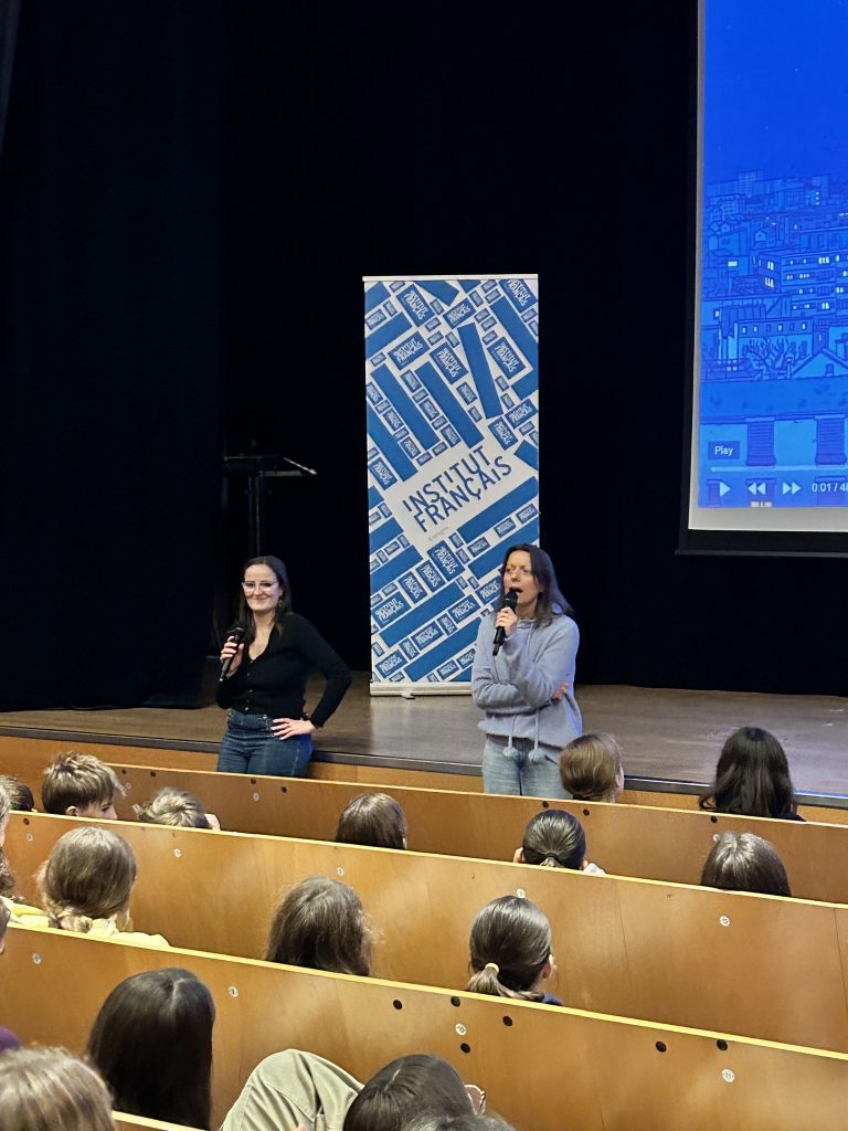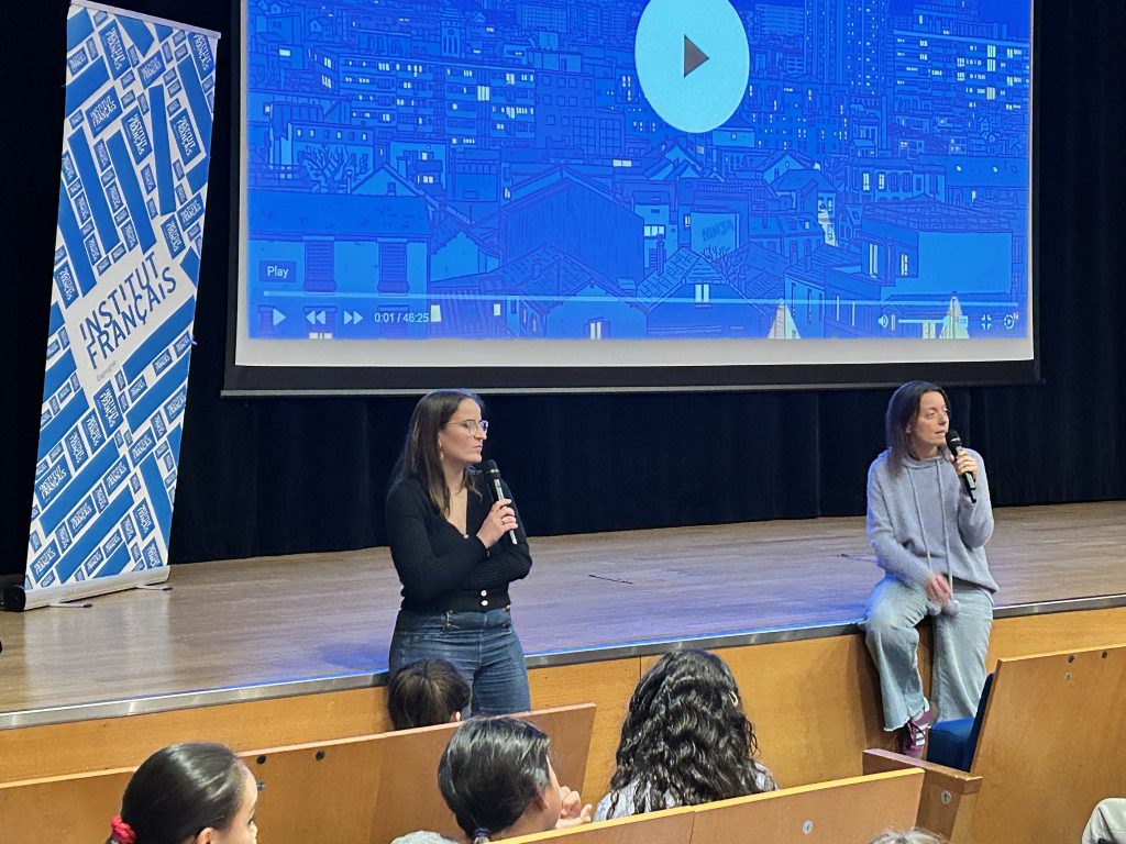 Celebramos la segunda jornada de la Fiesta de la animación en el Centro Joaquín Roncal en colaboración con el Instituto Francés de Zaragoza. Nos acompañaron las profesoras Marine y Lauriane que dirigieron los coloquios posteriores a la proyección de «Marcel le Père Noël et le Petit Livreur de pizzas». Asistieron alumnos del CP Cantín y Gamboa, Cp Rio sena, Cp Vadorrey les Allés, IES Avempace e IES Azucarera.